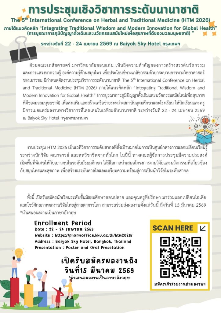 bussara sawangla 3 ชั่วโมง agoShow, ข่าวประชาสัมพันธ์ปิดความเห็น บน ประชาสัมพันธ์งานประชุมเชิงวิชาการระดับนานาชาติ The 5th International Conference on Herbal and Traditional Medicine (HTM 2026)7 Views